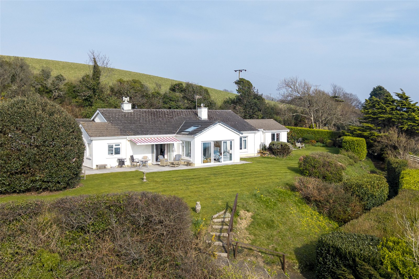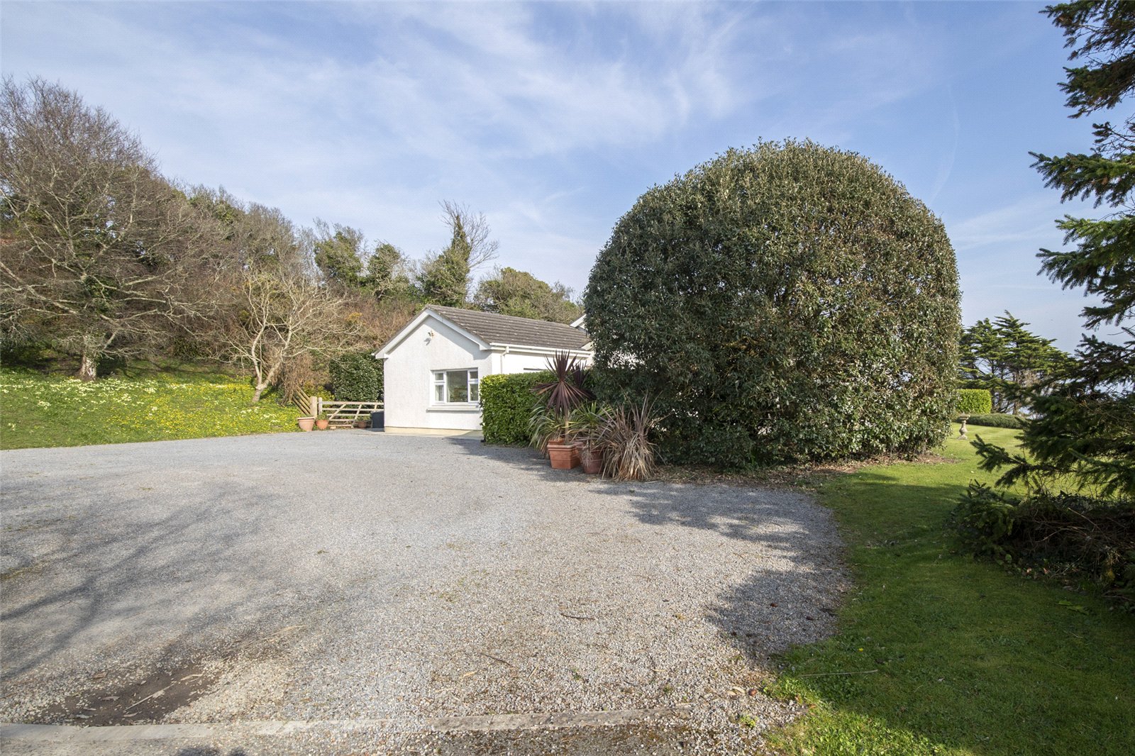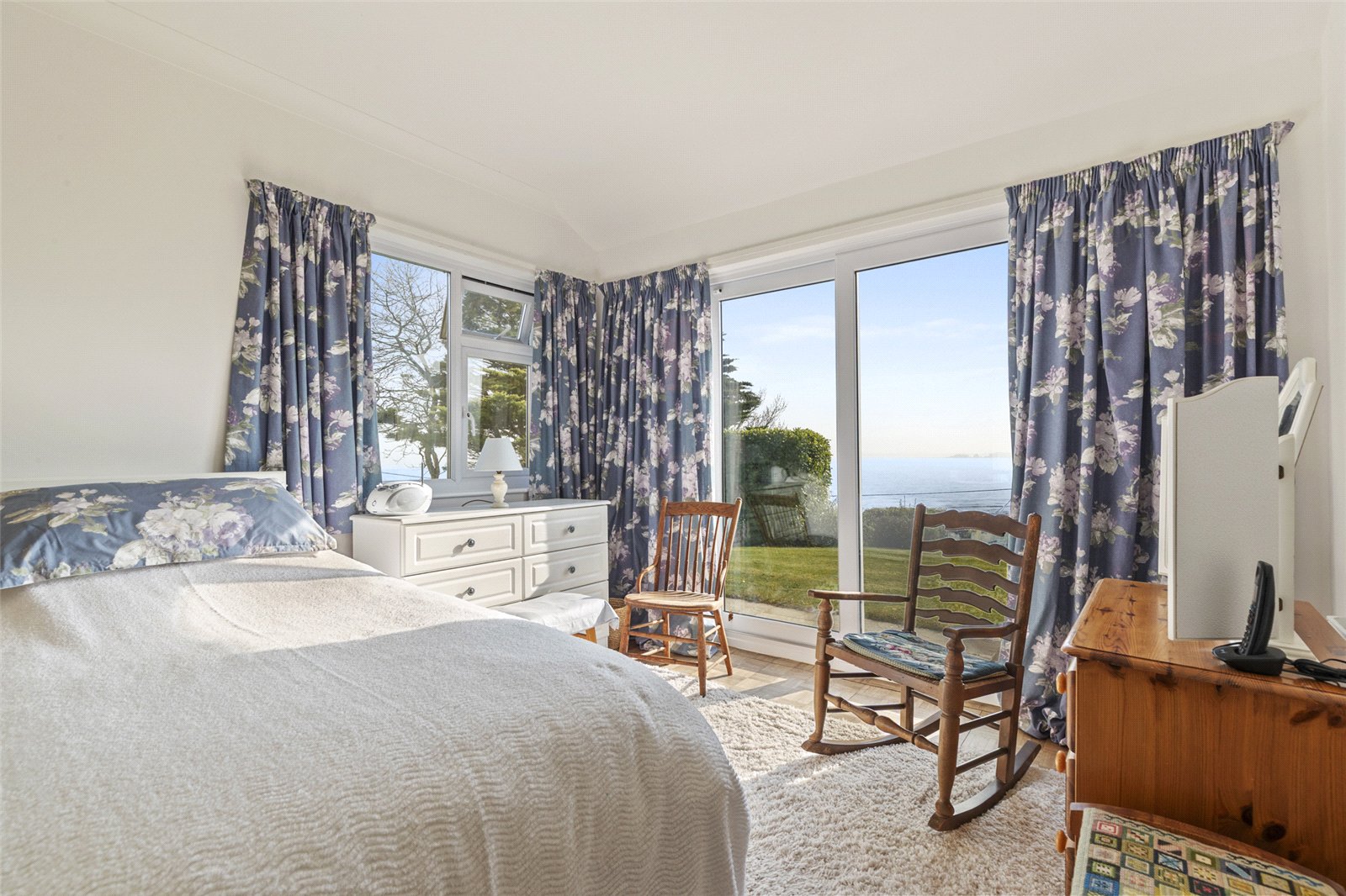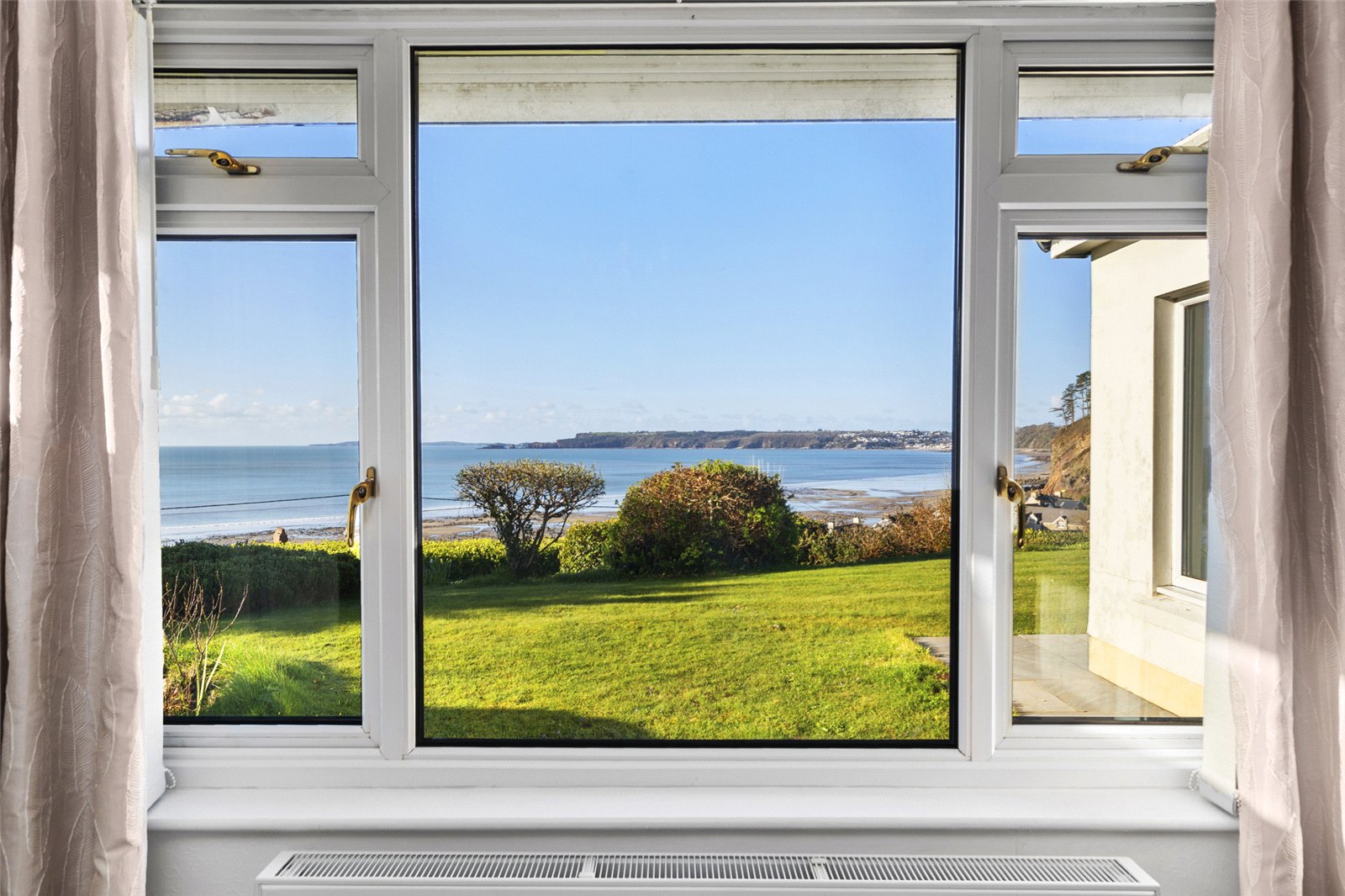 Set in an enviable coastal position, this beautifully maintained garden enjoys uninterrupted sea views and a wonderfully tranquil atmosphere. A generous expanse of level lawn provides an ideal space for outdoor entertaining, family use, or simply relaxing while taking in the stunning surroundings.