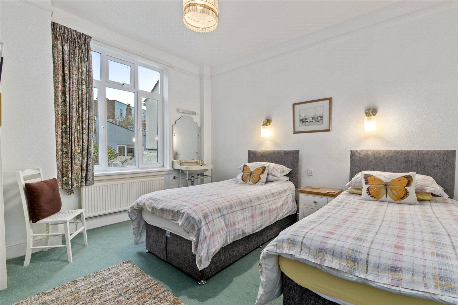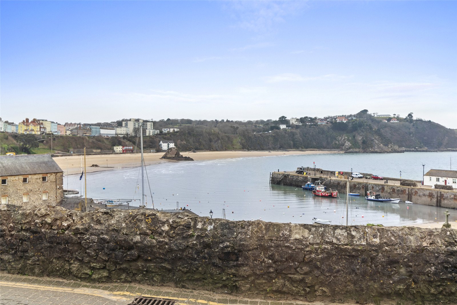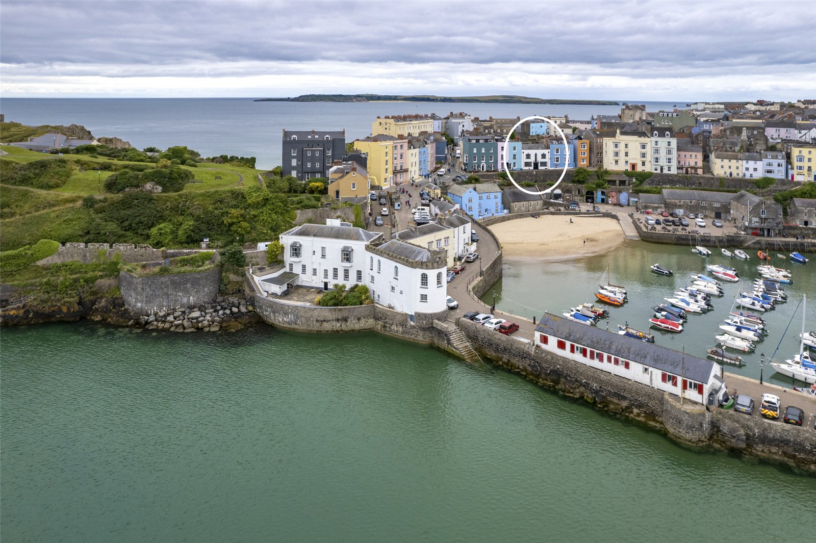 Quayside is a grand 1930s harbour home nestled above Tenby’s picturesque harbour, offering panoramic views of the award-winning North Beach and bustling harbour from almost every room. Rarely does a property on Bridge Street come to market, making this an exceptional opportunity to own a truly unique piece of Tenby’s coastal charm.   With four generously sized bedrooms, this spacious property retains its original 1930s features while blending modern comfort. The tastefully furnished interior includes a striking mix of family heirlooms and contemporary touches, creating a perfect balance of old-world charm and modern convenience.   Upon entering, you'll immediately notice the easy accessibility with shallow steps and a wide, shallow-stepped central staircase. As you ascend, you’ll be treated to even more breathtaking views of the harbour and beach.   The large sitting room features an open gas fire and ample seating for six, making it a wonderful space to relax while enjoying the stunning sea views. To the rear, a library with a selection of local history books, National Geographic magazines, and tide tables offers a quiet retreat for those wishing to explore the area’s rich heritage.   The period dining room, with a large table for six, is perfect for hosting special occasions while taking in the magnificent views. At the rear of the house, a well-appointed kitchen is fully equipped with modern appliances, including an American-style fridge freezer, oven, dishwasher, and a breakfast table. There’s also a small yard and shed, ideal for storing surfboards, beach equipment, or bikes for local cycling events.   The downstairs bathroom is fitted with a bath, freestanding shower, wash basin, and toilet for added convenience.   Upstairs, the master bedroom boasts a king-size bed, an en-suite shower room, fitted wardrobes, and a window table with exceptional sea views. A second double bedroom also enjoys panoramic views and comes with a wash hand basin and wardrobes. The comfortable twin bedroom at the back of the house features large windows looking over the yard, along with twin beds, a wardrobe, and a wash hand basin. An upstairs toilet is conveniently located between the twin and double bedrooms.   The property also offers the exciting opportunity to create your very own wine cellar, adding to its appeal as both a family home and an investment for those seeking a unique property in Tenby.   Quayside is a rare find that won’t stay on the market for long. With its captivating views, generous living space, and character-filled design, it’s the perfect opportunity to secure a slice of Tenby’s historic charm.