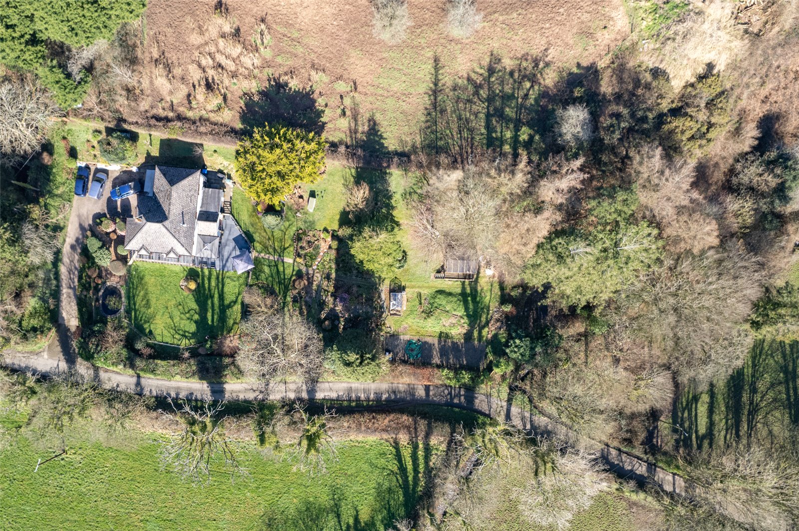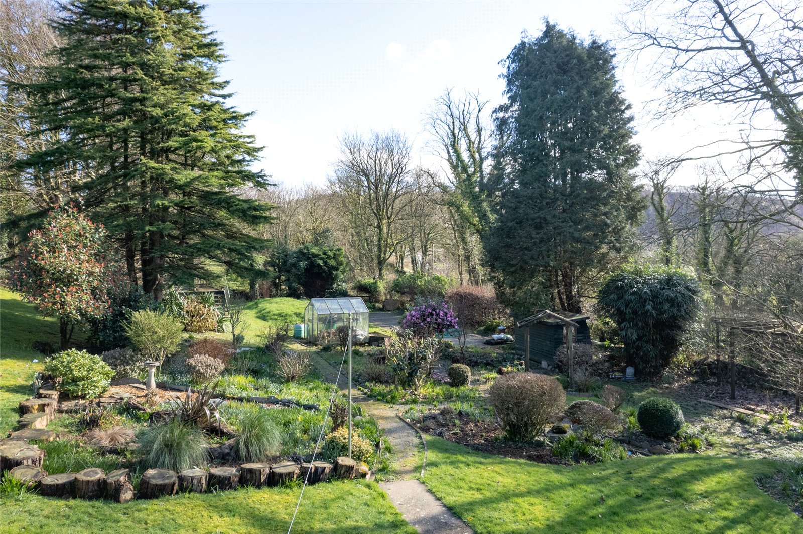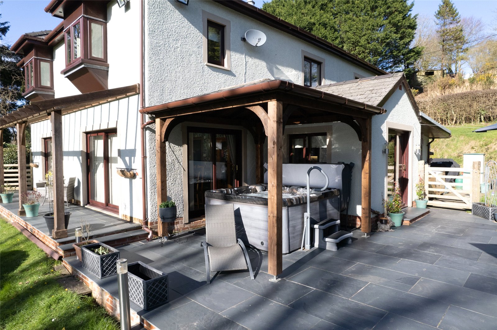 A gated entrance opens to a brick-paved driveway, providing ample parking as well as access to the garage. The grounds are a testament to meticulous landscaping, featuring mature trees, shrubs, and an established pond. A fully enclosed fenced garden area with a South-facing slate patio, wooden gazebo housing a hot tub, and a pergola overlooking the lawned garden create a private retreat perfect for personal relaxation and social gatherings. Beyond, the garden is a labyrinth through the acre it occupies. Functionality is key, with an outdoor kitchenette with functional ceramic sink and hot and cold water supply useful for gardening and outdoor food preparation. In addition, the property benefits from a raise plinth workshop, a greenhouse, a wood store, and a sizeable concrete base with the potential to build an outdoor workshop, outbuilding or home office, depending on the new vendors’ requirements and subject to planning if required. A gentle stream runs partially through the grounds, with a well-placed bridge allowing for access into a further garden area.