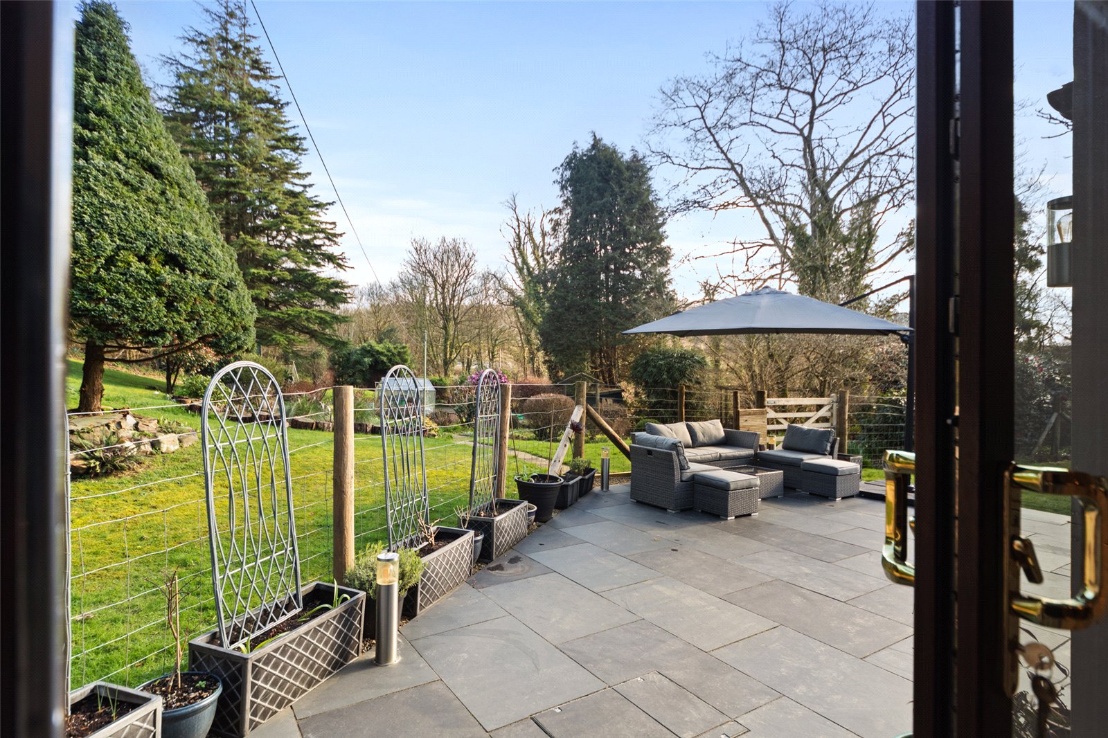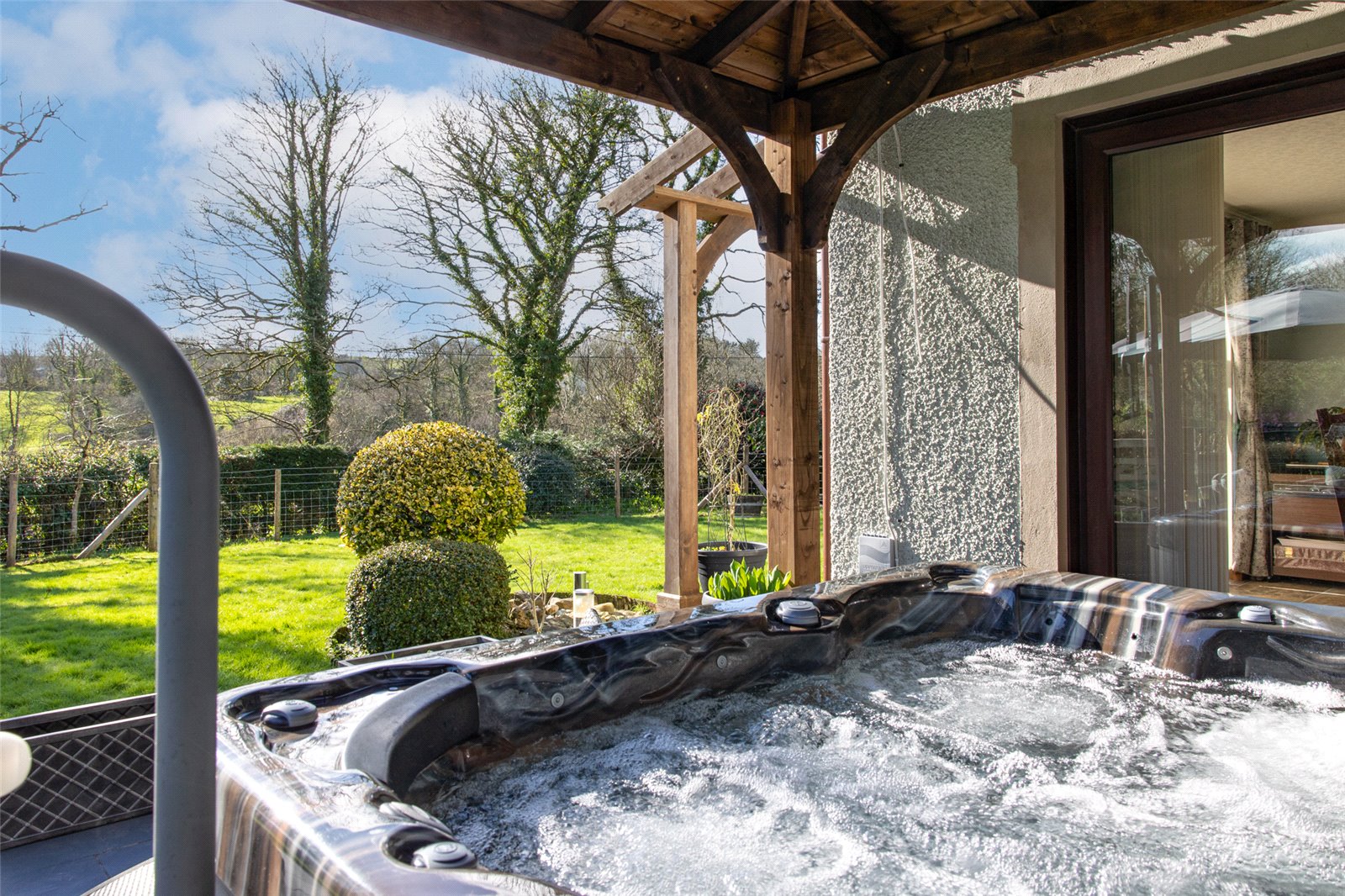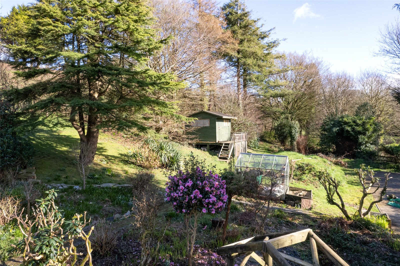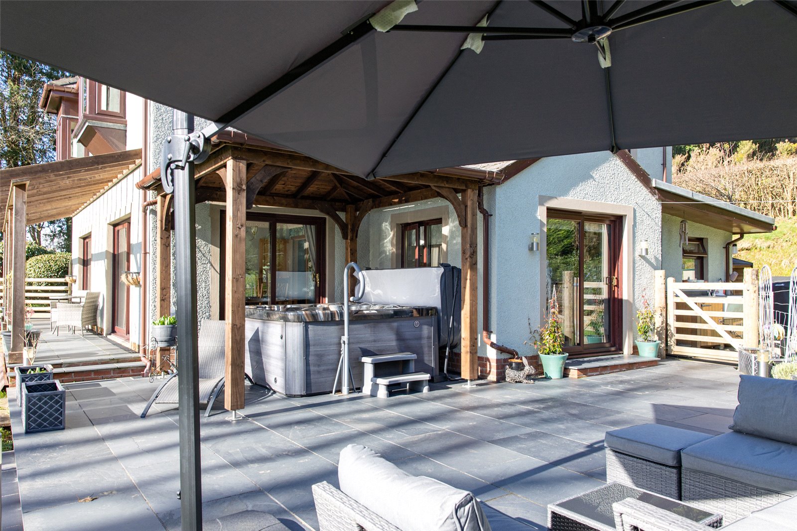 A gated entrance opens to a brick-paved driveway, providing ample parking as well as access to the garage. The grounds are a testament to meticulous landscaping, featuring mature trees, shrubs, and an established pond. A fully enclosed fenced garden area with a South-facing slate patio, wooden gazebo housing a hot tub, and a pergola overlooking the lawned garden create a private retreat perfect for personal relaxation and social gatherings. Beyond, the garden is a labyrinth through the acre it occupies. Functionality is key, with an outdoor kitchenette with functional ceramic sink and hot and cold water supply useful for gardening and outdoor food preparation. In addition, the property benefits from a raise plinth workshop, a greenhouse, a wood store, and a sizeable concrete base with the potential to build an outdoor workshop, outbuilding or home office, depending on the new vendors’ requirements and subject to planning if required. A gentle stream runs partially through the grounds, with a well-placed bridge allowing for access into a further garden area.