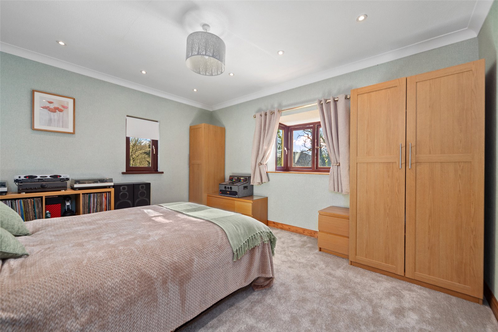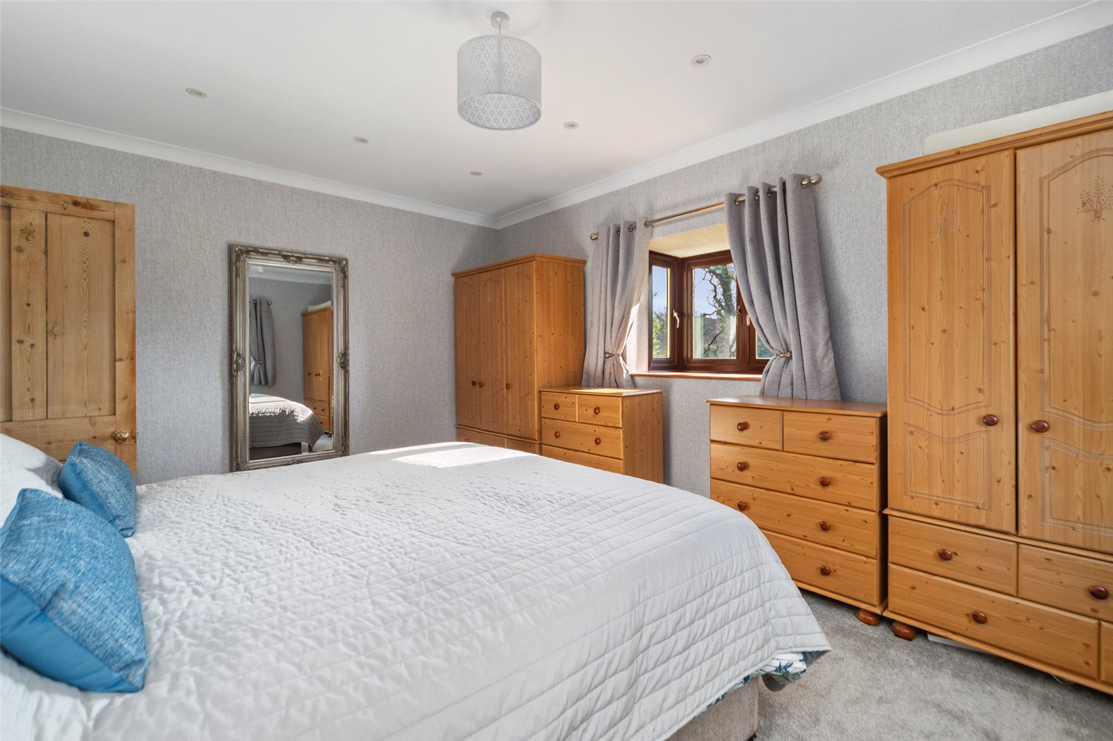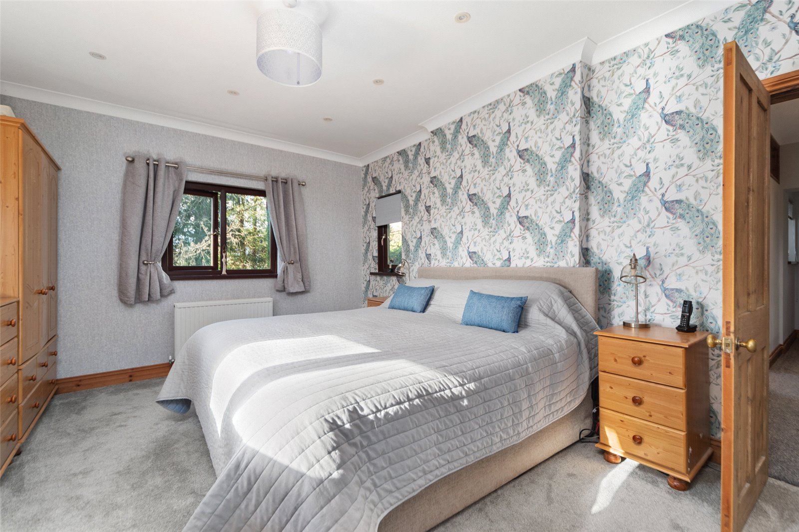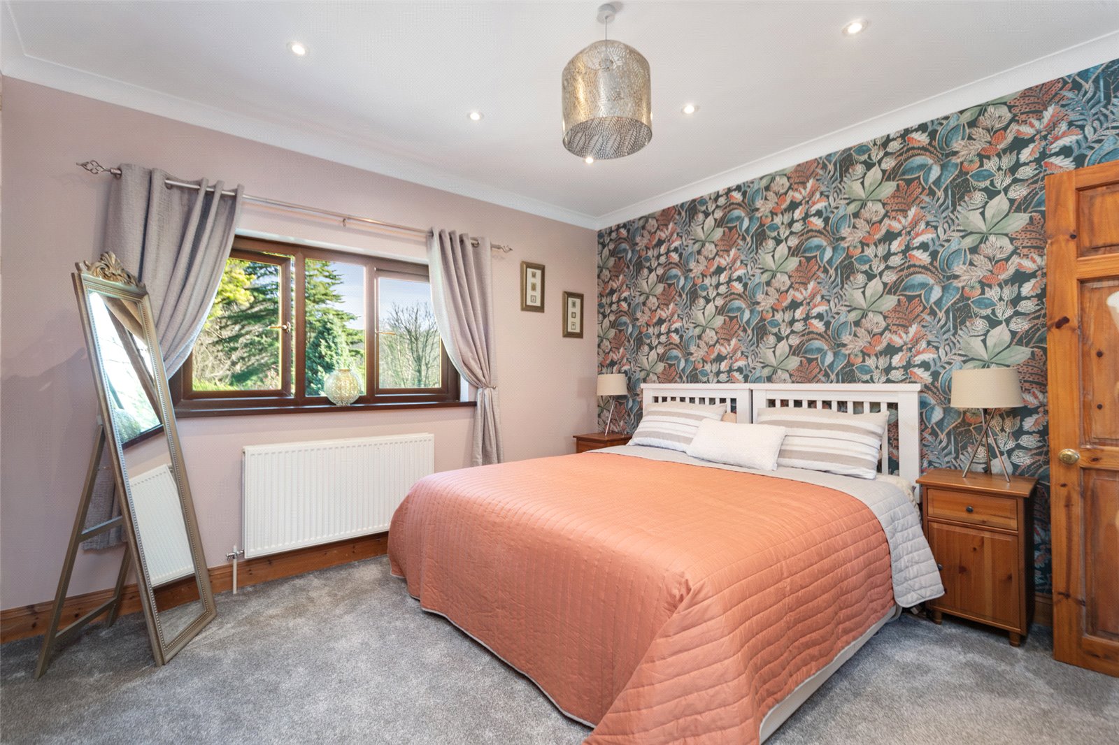 Welcoming you through a solid natural wood door, Bedroom 2 is bathed in natural light from its uPVC double glazed bay window offering breath-taking countryside views to the front and an additional uPVC double glazed window providing scenic views of the grounds. A feature wall adds character, complemented by a plush carpet underfoot, ensuring a cosy and inviting atmosphere.