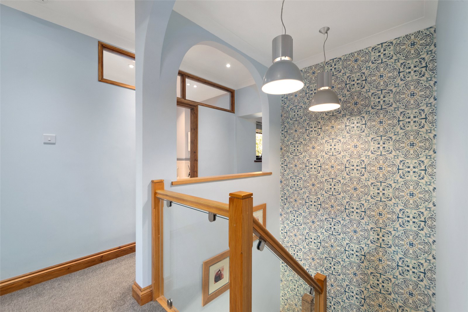 From the bespoke oak staircase, access is given to the carpeted landing space, complete with decorative features such as archways and a feature wall. Access is given to the attic, which is fully insulated and partially boarded for additional storage. Access also to;